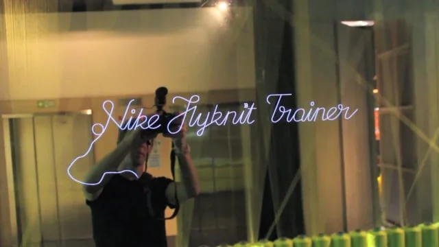Floating animation, presented via a mirror display, for the UK launch of Flyknit at Nike's House of Innovation in Selfridges London.